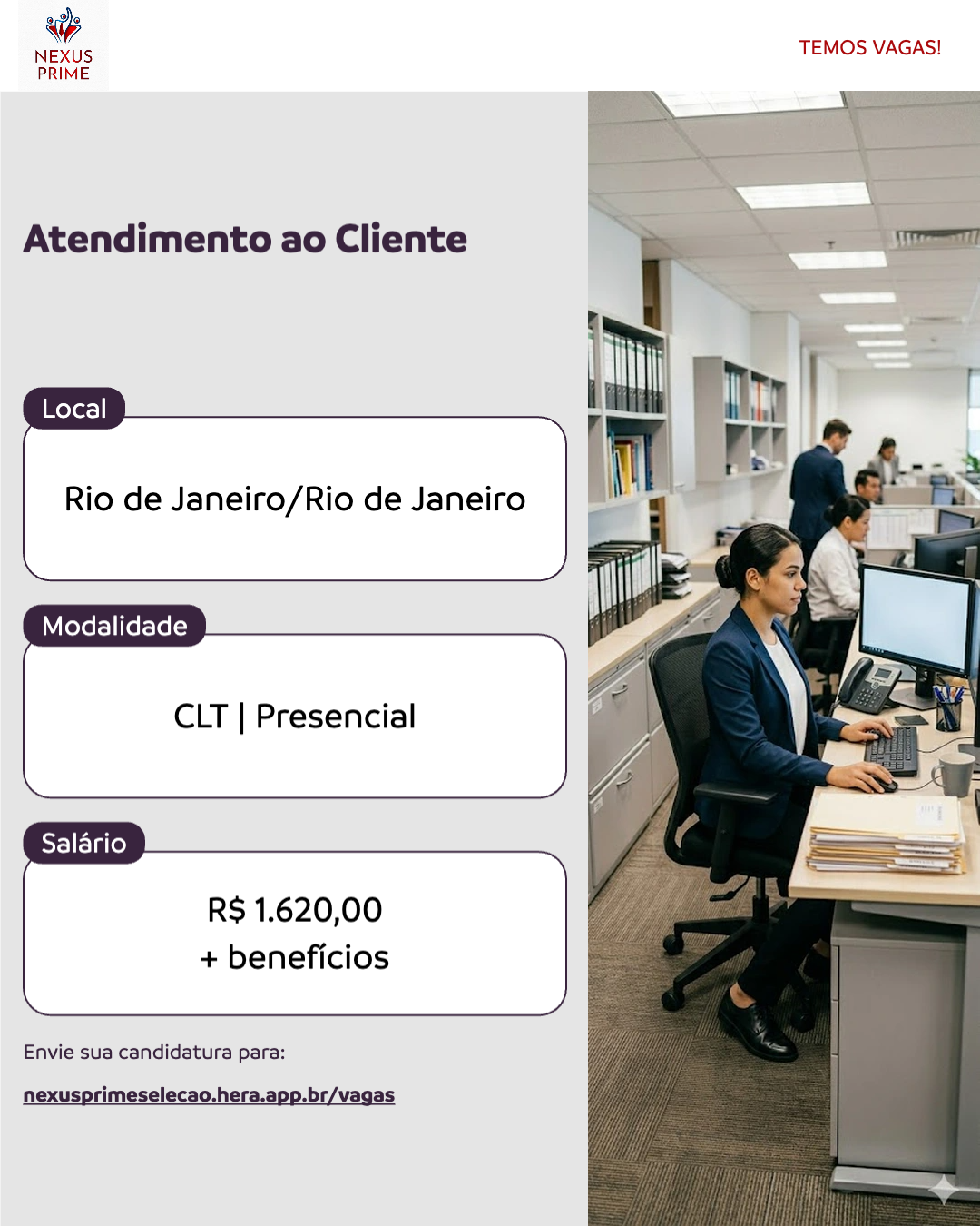 Rio de Janeiro/RJ Presencial CLT R$ 1.620,00