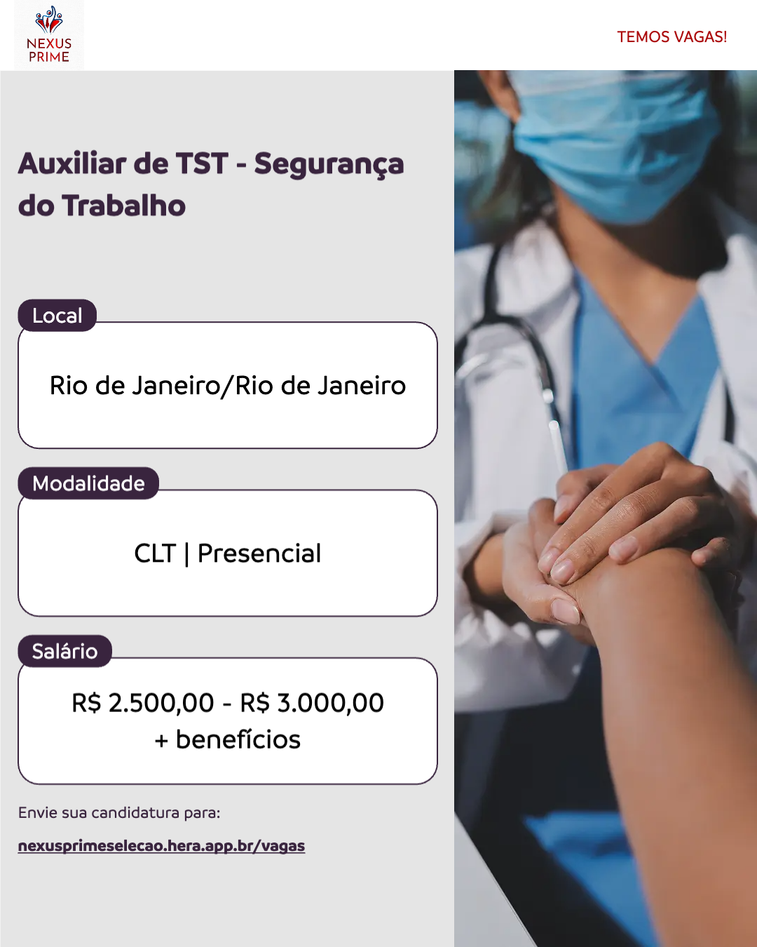 O Auxiliar de TST - Segurança do Trabalho será responsável por apoiar a implementação e manutenção das normas de segurança, promovendo um ambiente de trabalho seguro e saudável. Este profissional atuará na identificação de riscos, na realização de treinamentos e na elaboração de relatórios sobre as condições de segurança, contribuindo para a melhoria contínua dos processos e a conformidade com as legislações vigentes.