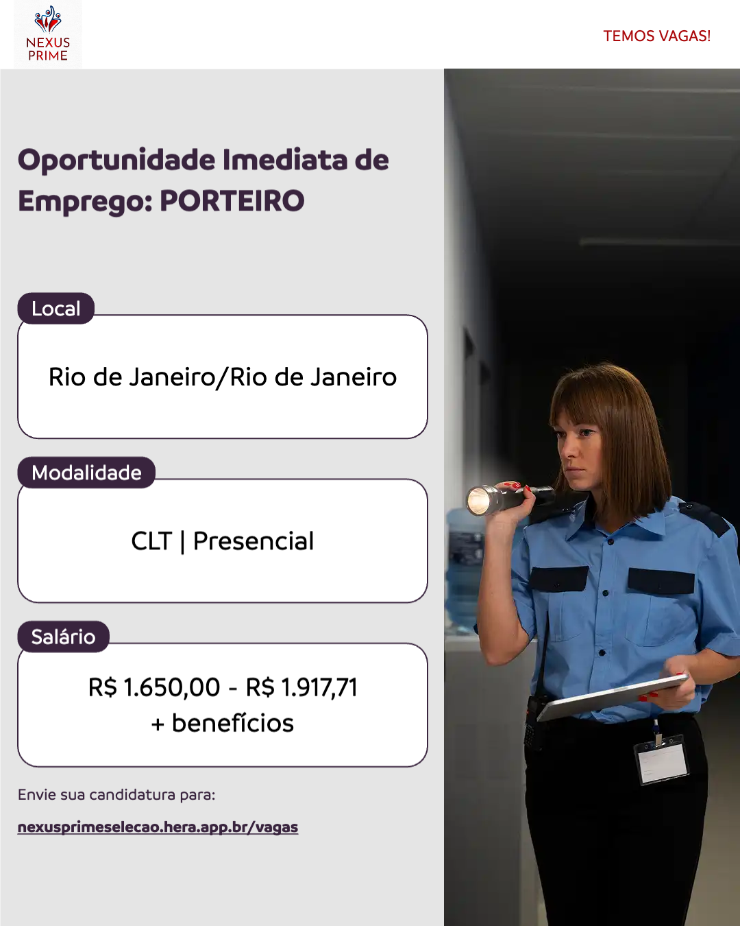 Oportunidade Imediata de Emprego: PORTEIRO